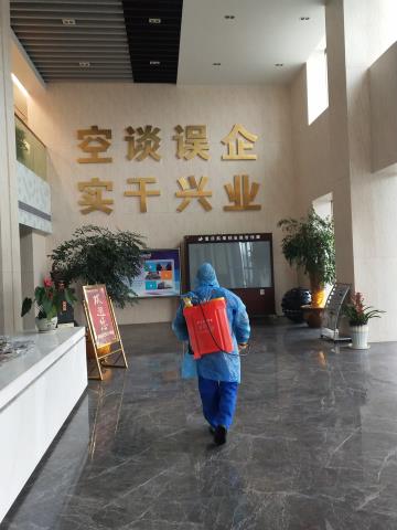 2月27日,公司對辦公樓、宿舍樓、車間、食堂、衛生間等區域進行徹底消毒,為安全復工作充分準備。